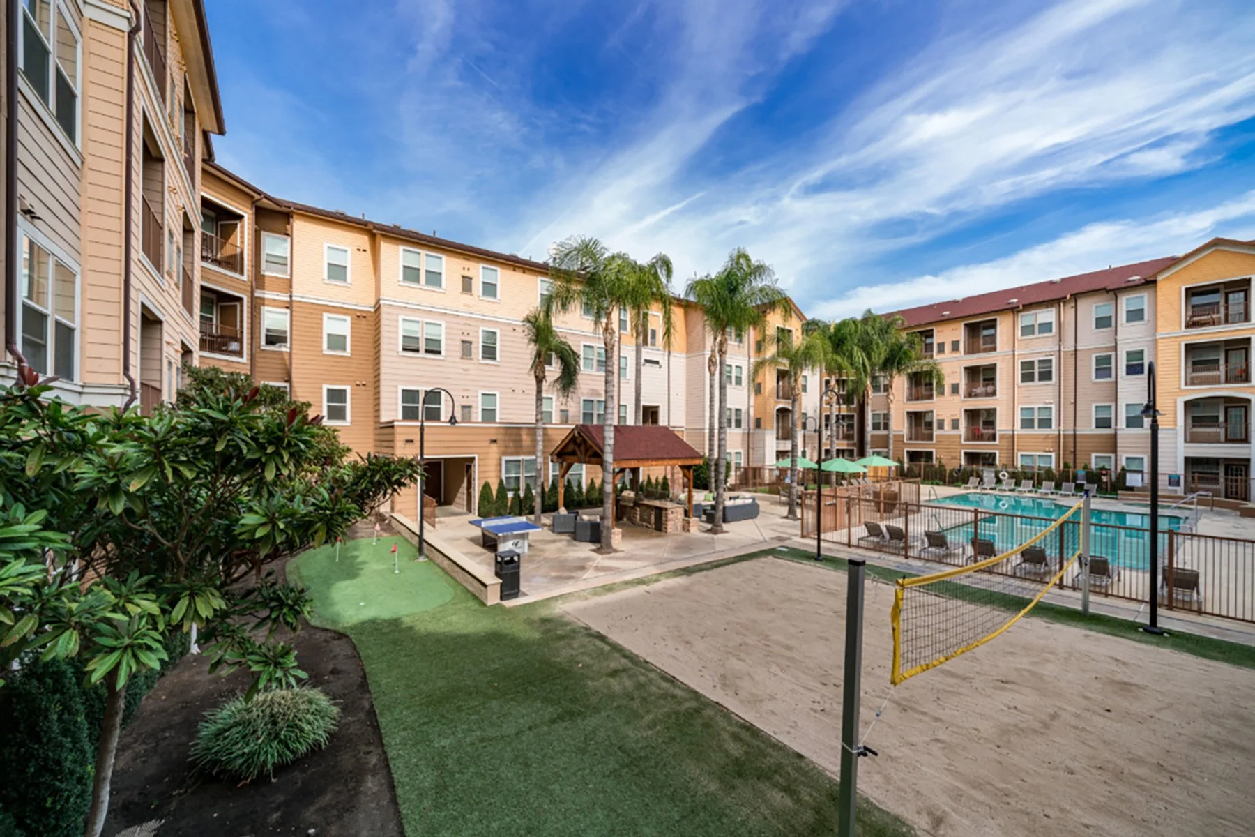 University Village is one of the most popular student housing options near Fresno State, offering a true college living experience with modern amenities. Each student has their own private bedroom and bathroom, which creates a good balance between independence and shared living. The community is active and social, making it easy for new students to meet people and adjust to college life.